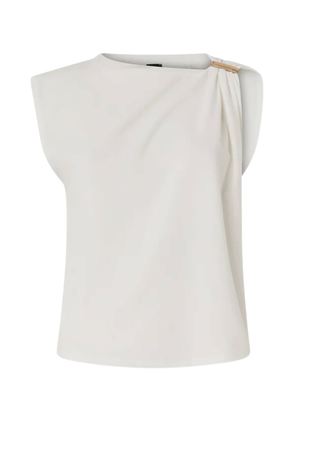 La Pinko Canotta Donna smanicata con morsetto dorato è il capo perfetto per elevare ogni look con un tocco sofisticato. Il design pulito è valorizzato dal morsetto metallico applicato sulla spalla, che crea un raffinato drappeggio e illumina l’insieme con un accento prezioso.